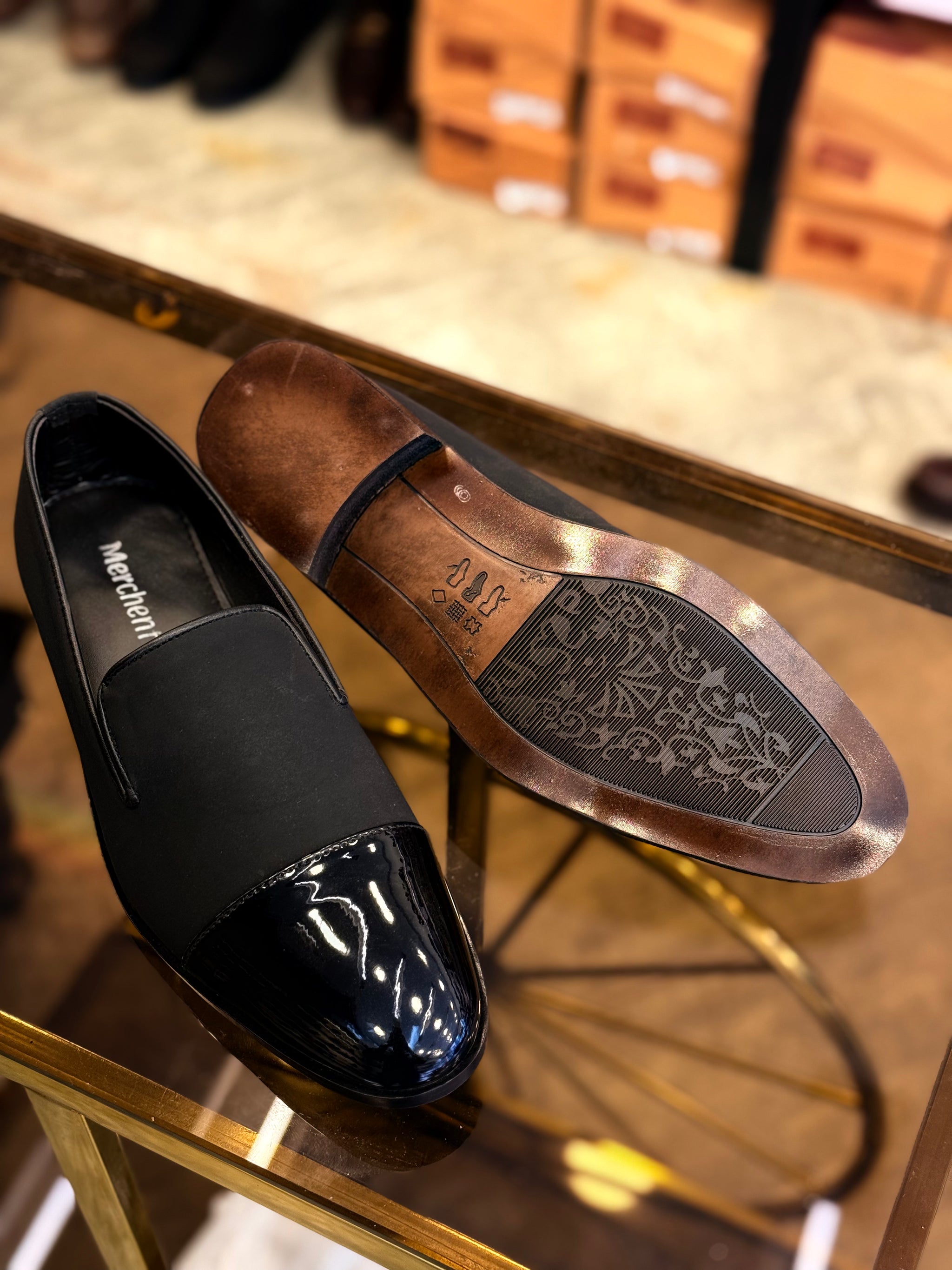 The combination of suede texture and glossy finish adds a refined touch.